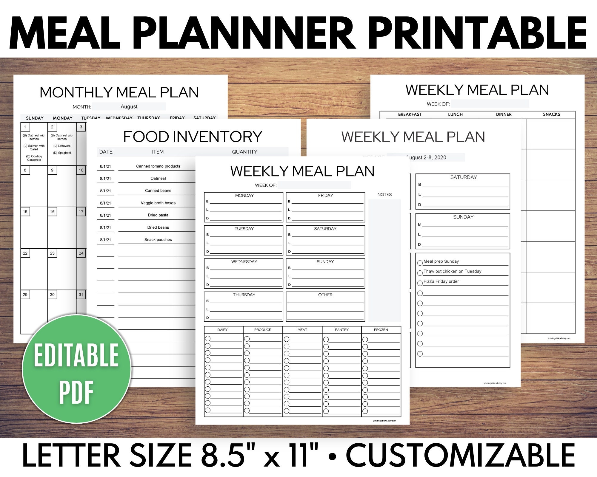 Meal Planner Template Monthly Meal Planner Printable Grocery