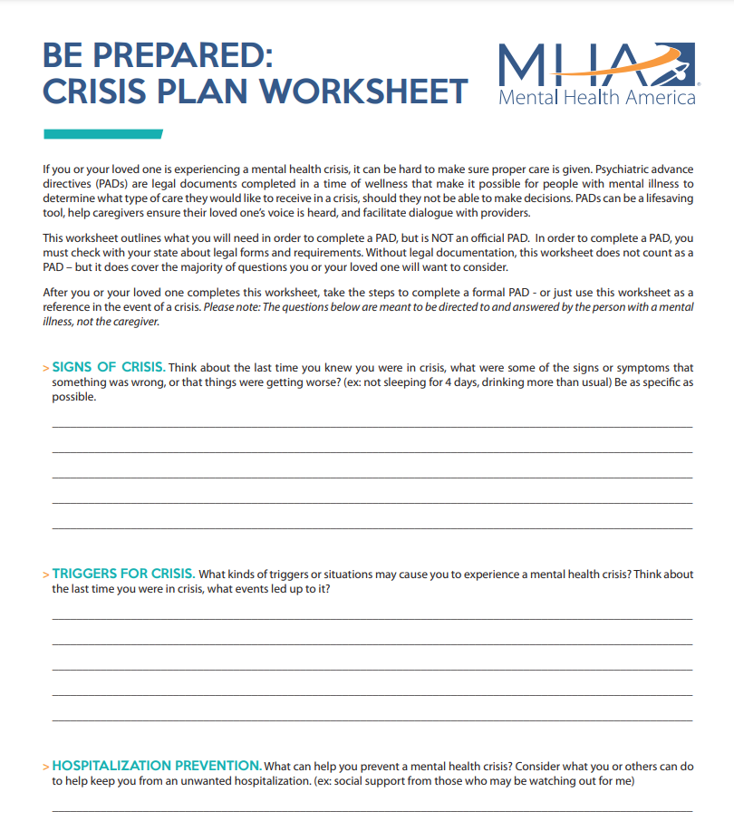 Safety Plan For Mental Health Mental Health Worksheet Printable