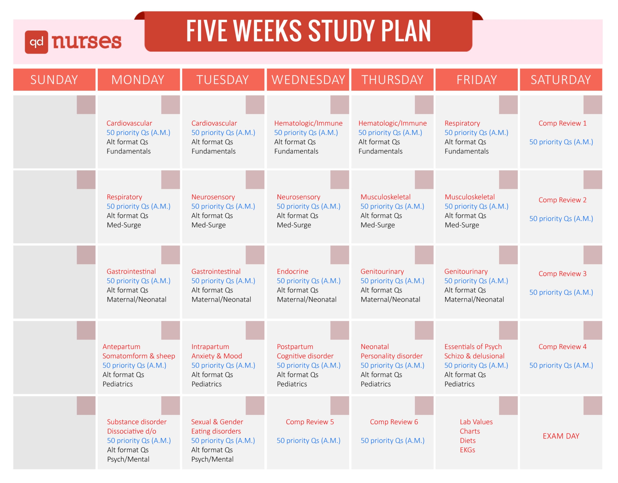 NCLEX 5 Week Study Plan To Do List Blank Schedule Plan