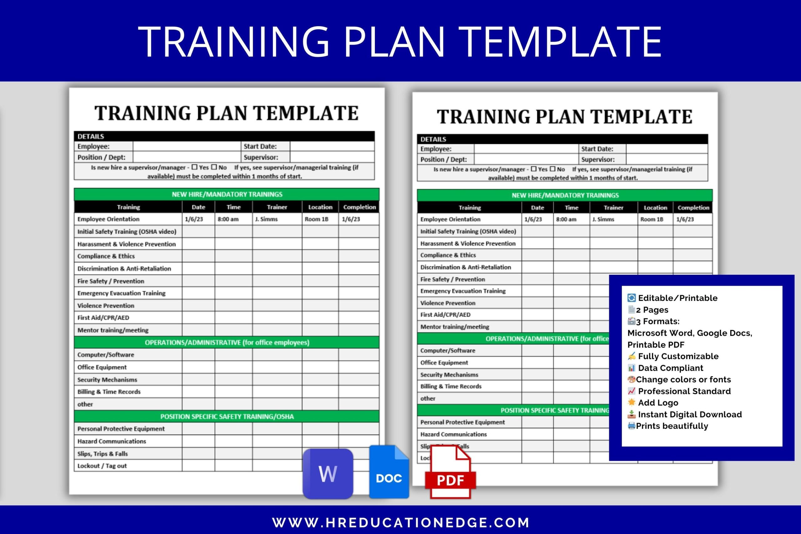 Employee Training Plan New Hire Training Plan Employee Training Training Log Training Tracker HR Forms Editable MS Word New Hire Etsy UK