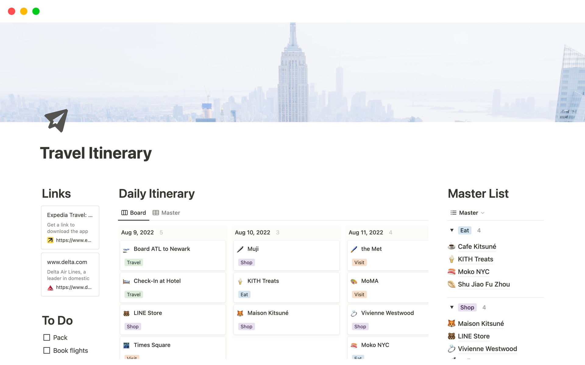 Whether you’re a seasoned traveler or just starting out, the Notion Travel Plan Template is perfect for keeping track of your itinerary, packing list, and budget. Say goodbye to scattered notes and hello to a stress-free travel planning experience!
