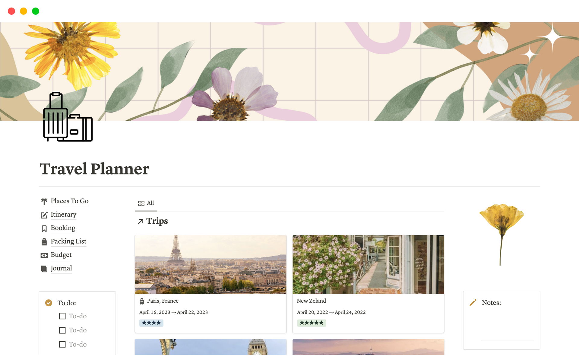 Say goodbye to travel planning headaches and hello to seamless organization with the Notion Travel Plan Template. Start using this intuitive tool today and make your next trip your best one yet!