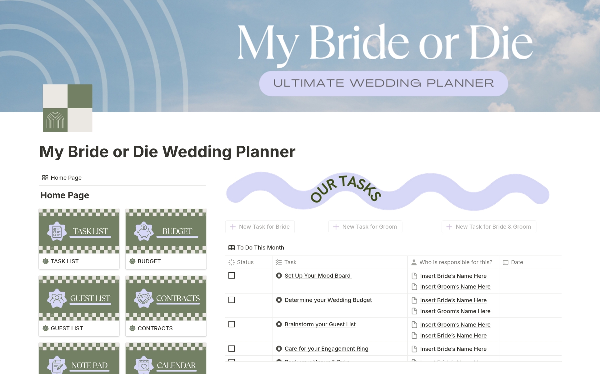 My Bride Or Die Wedding Planner Template Notion Marketplace