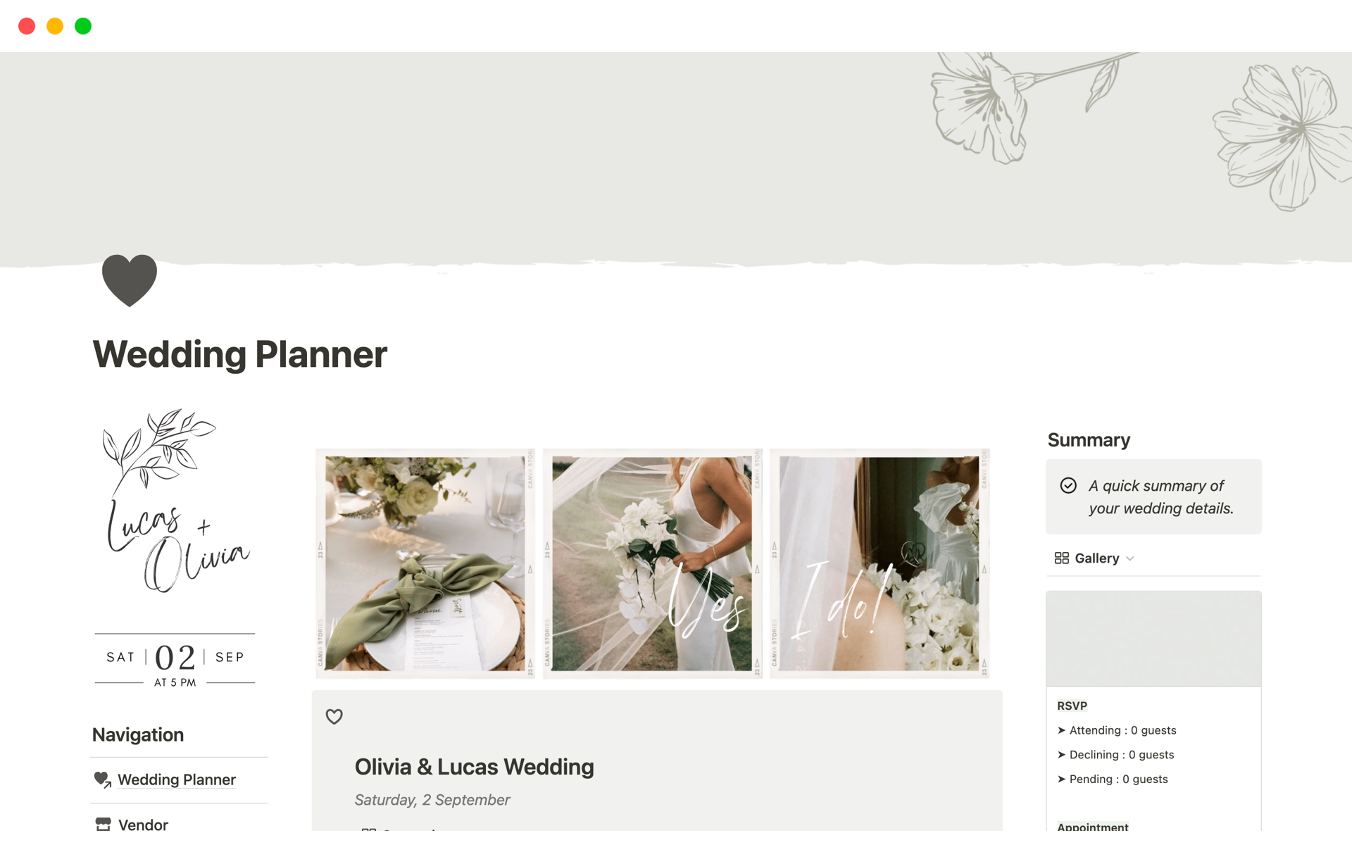 Notion Wedding Planning Template