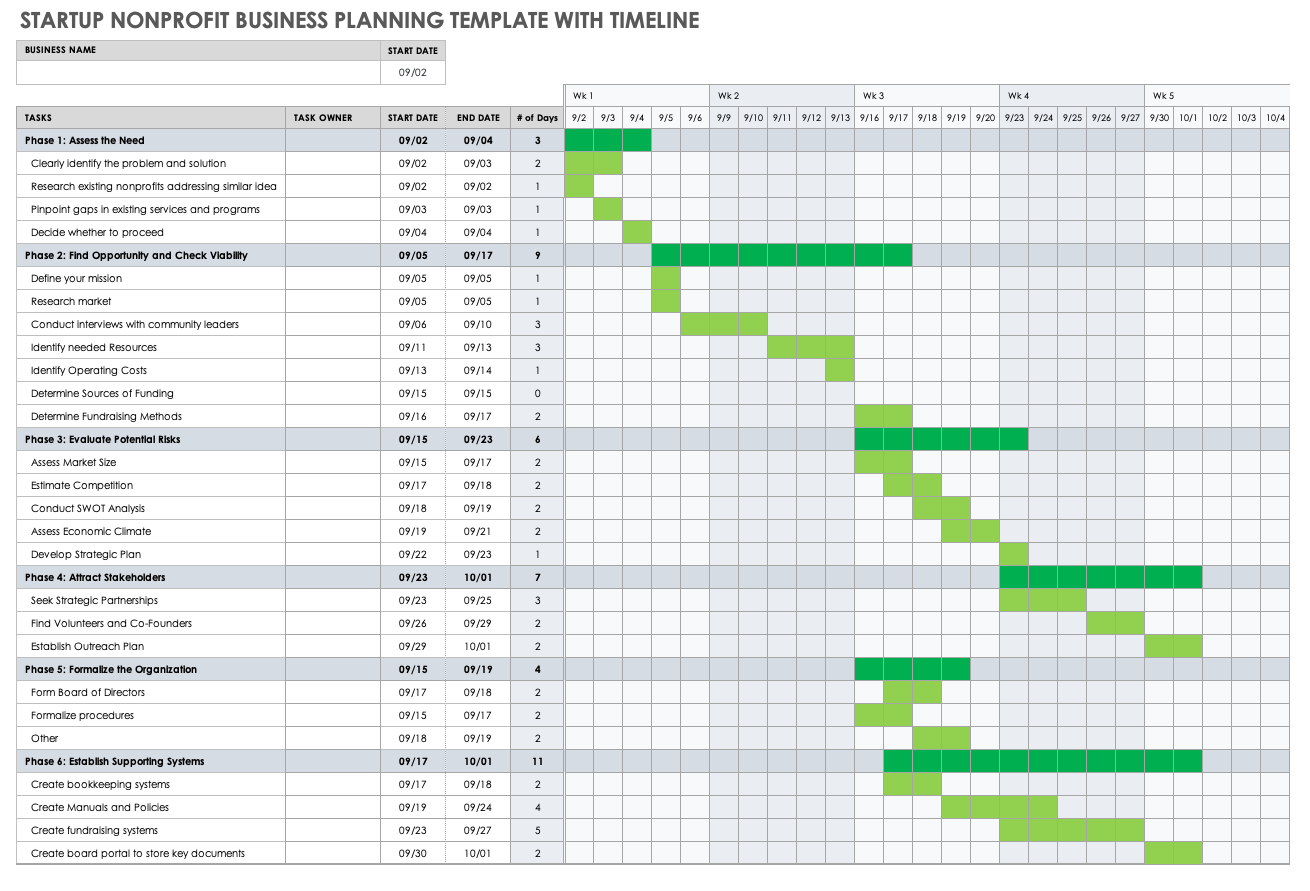Nonprofit Business Plan Templates Smartsheet