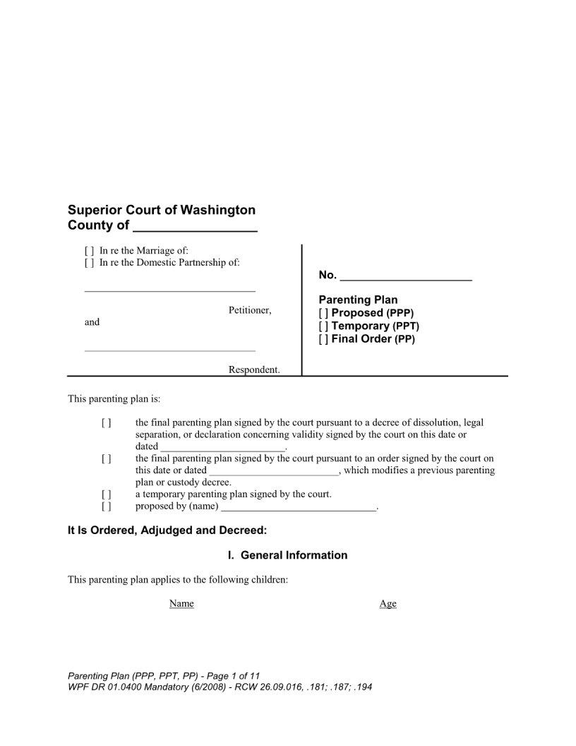 Washington State Parenting Plan U0026 Example Free PDF Download