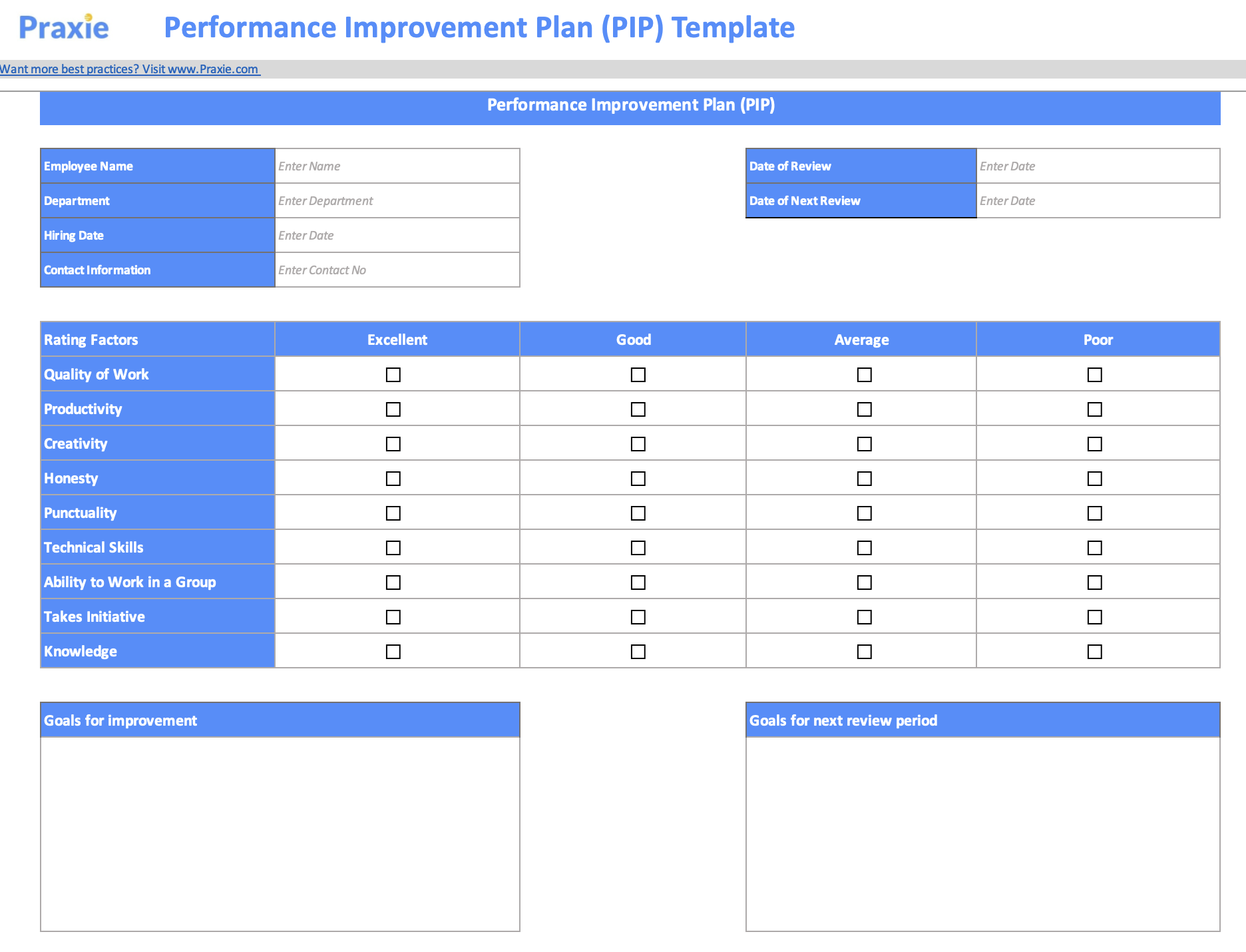 Performance Improvement Plan Template Human Resources U0026 Employee