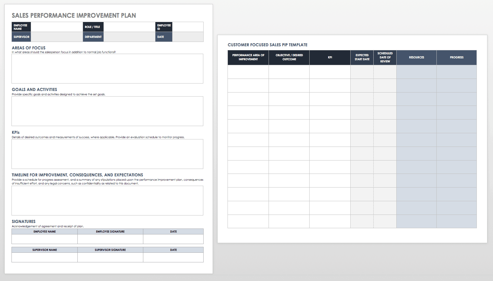 Free Performance Improvement Plan PIP Templates