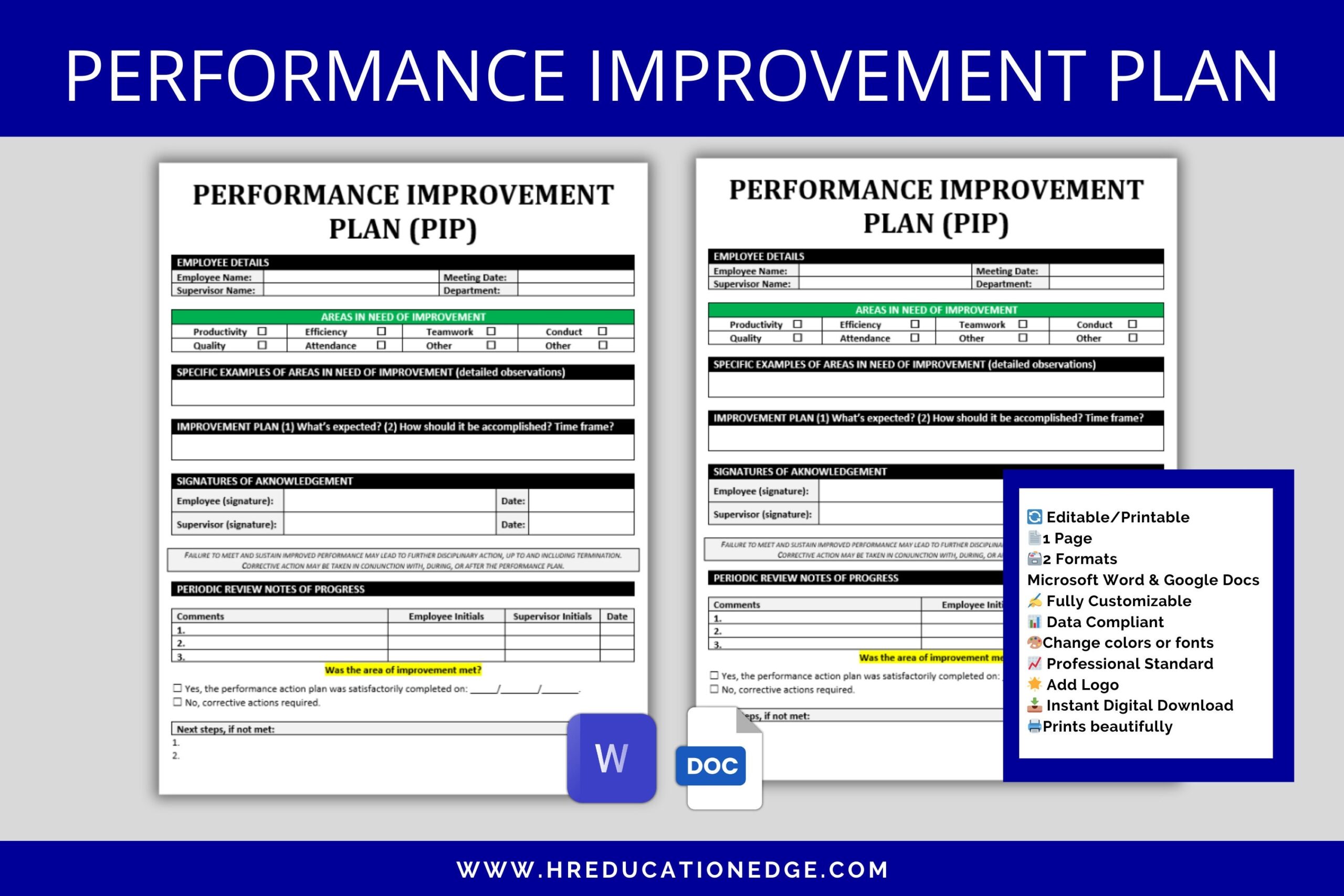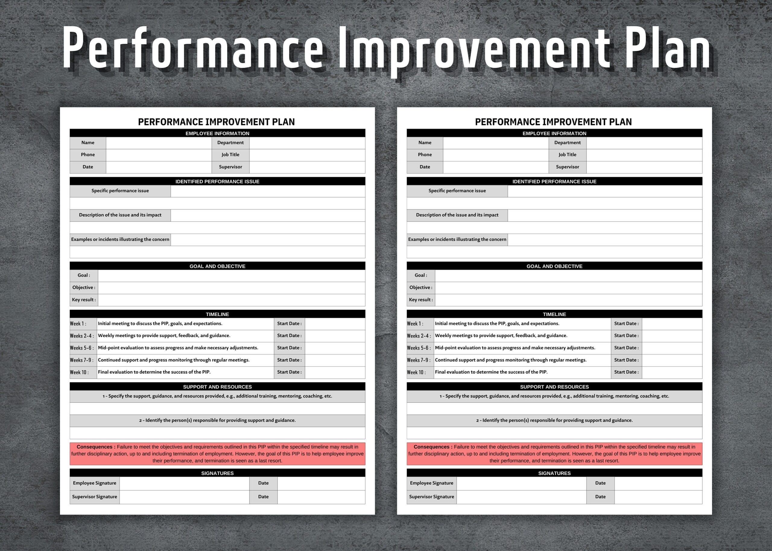 Performance Improvement Plan Template Printable PIP Form Human Resources Business Tools HR Templates Editable PIP Template Etsy Finland