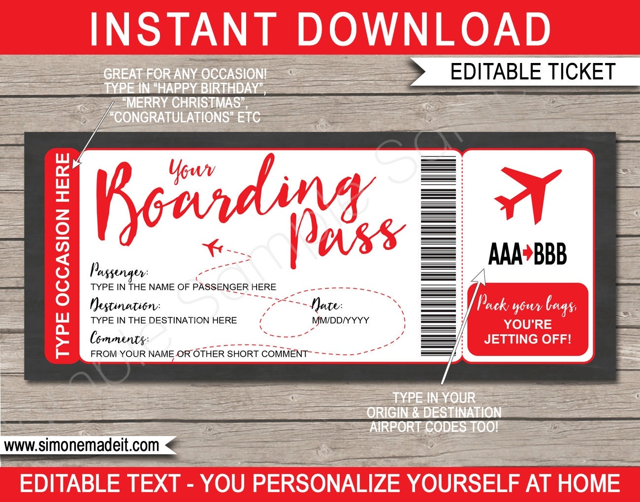Boarding Pass Template Surprise Fake Plane Ticket Trip Gift Any