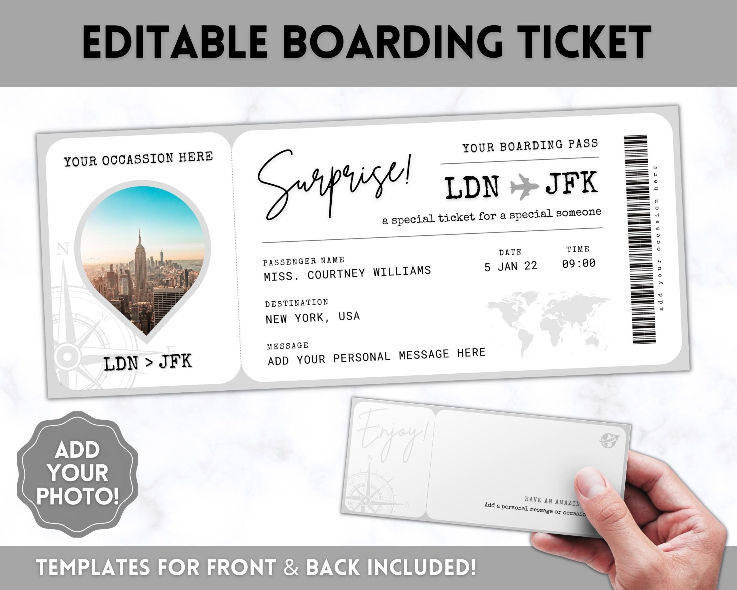 EDITABLE Boarding Ticket Template Surprise Boarding Pass Plane Ticket Vacation Airline Trip Flight Gift Holiday Destination Fake Mom Etsy