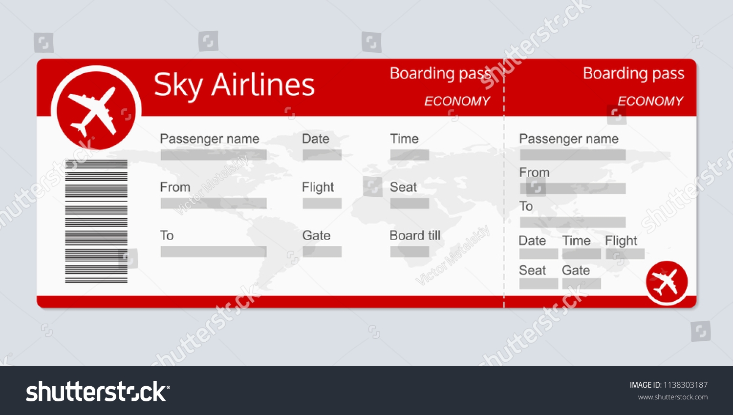 Vektor Stok Plane Ticket Template Airplane Flight Ticket Tanpa Royalti 1138303187 Shutterstock