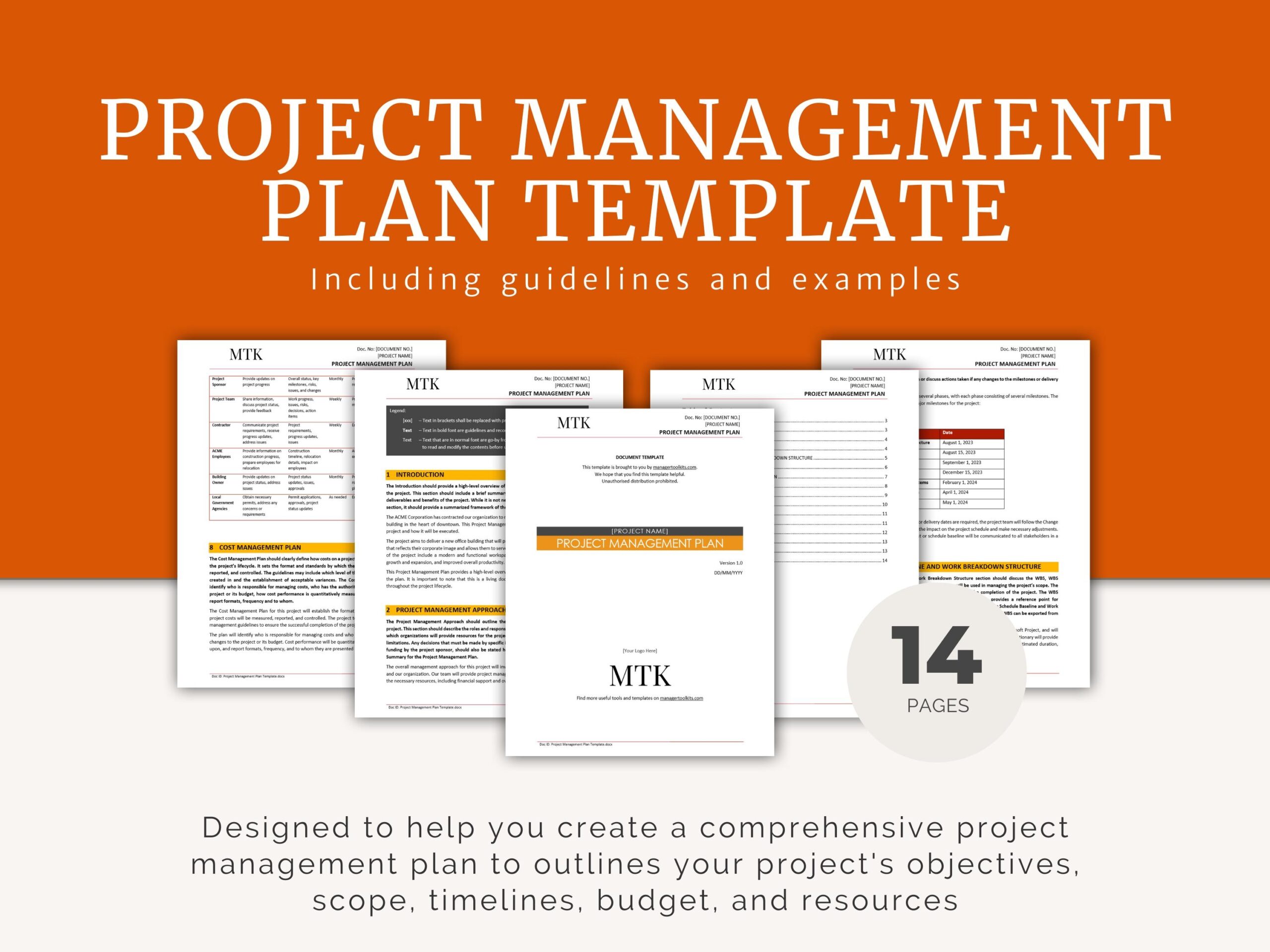 Project Management Plan Template Fully Editable MS Word With Examples PMP Project Management PMI Project Planning