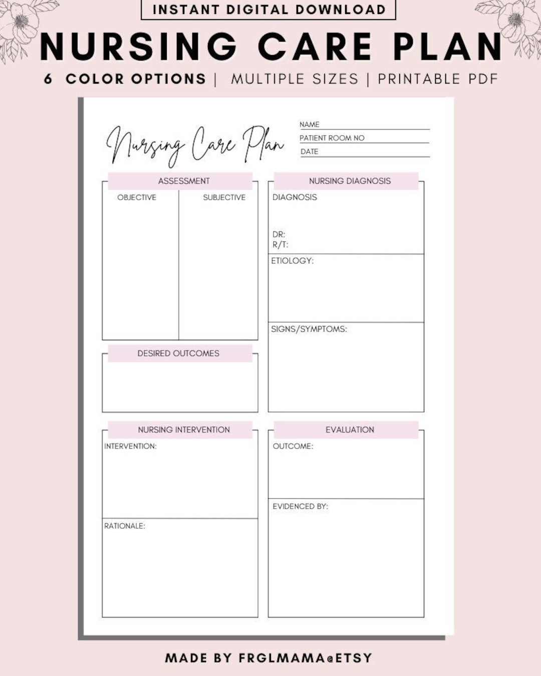 Nursing Care Plan Templates Nursing Care Plan Nursing Student Resources Student Nurse Sheets Assessment Diagnosis Planning Etsy