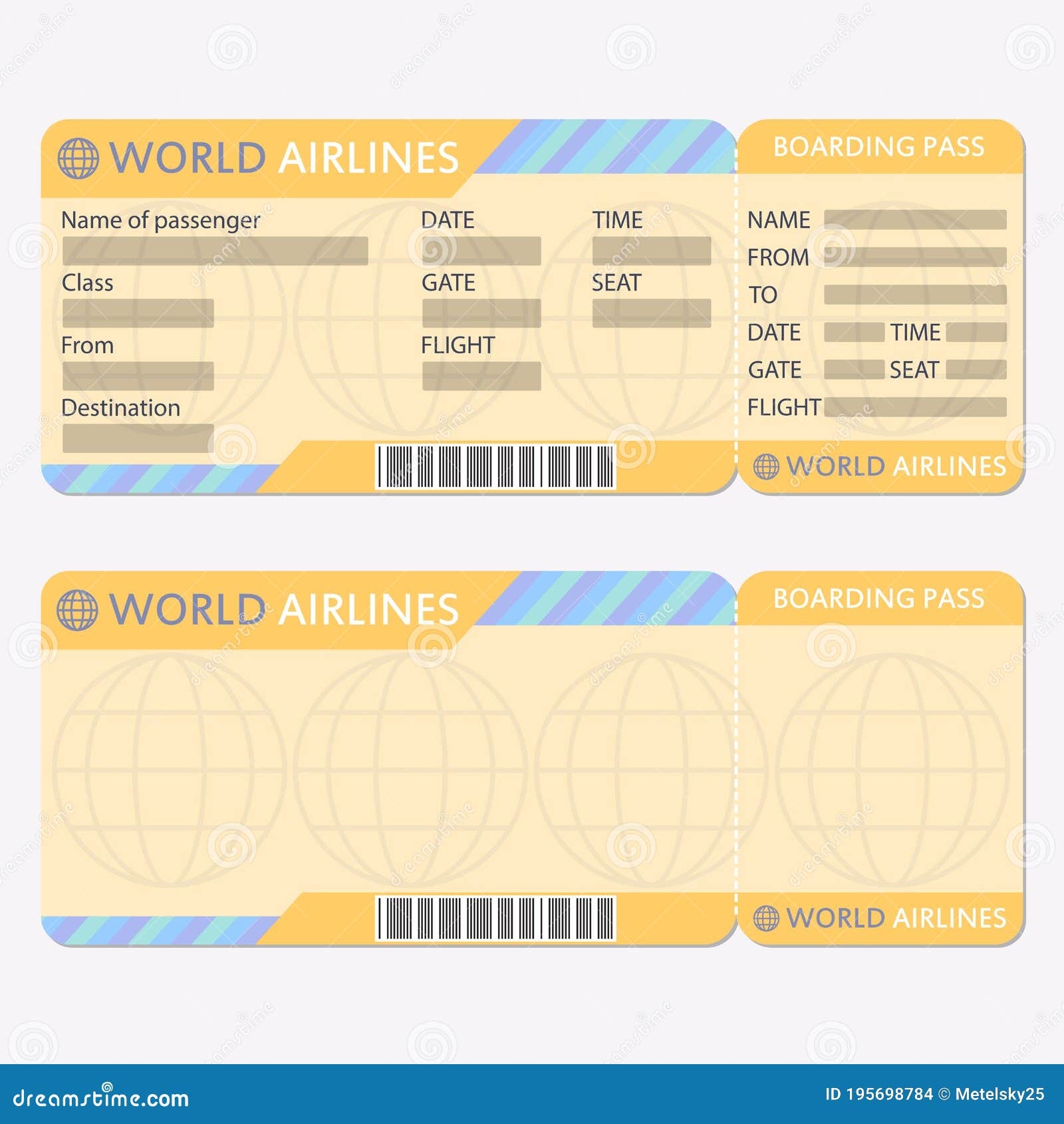 Airline Or Plane Ticket Template Boarding Pass Blank And Airplane Ticket Stock Vector Illustration Of Aircraft Airline 195698784