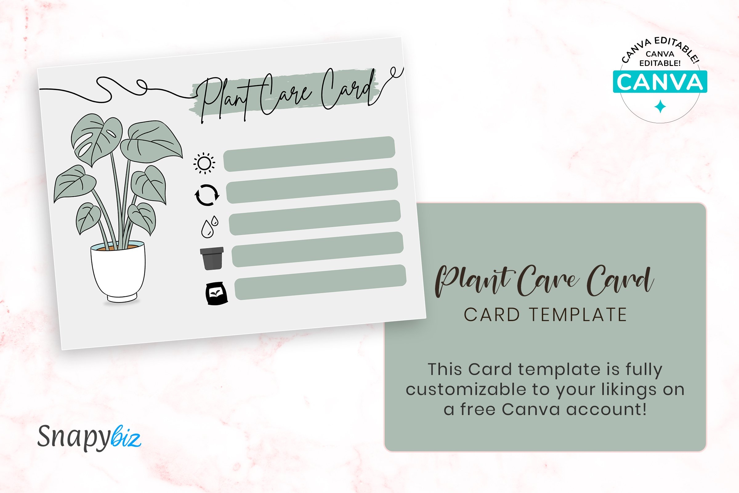 Editable Houseplant Care Card Printable Plant Care Template