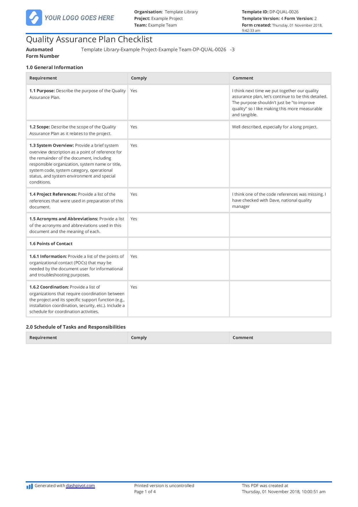 Quality Assurance Plan Checklist Free And Editable Template