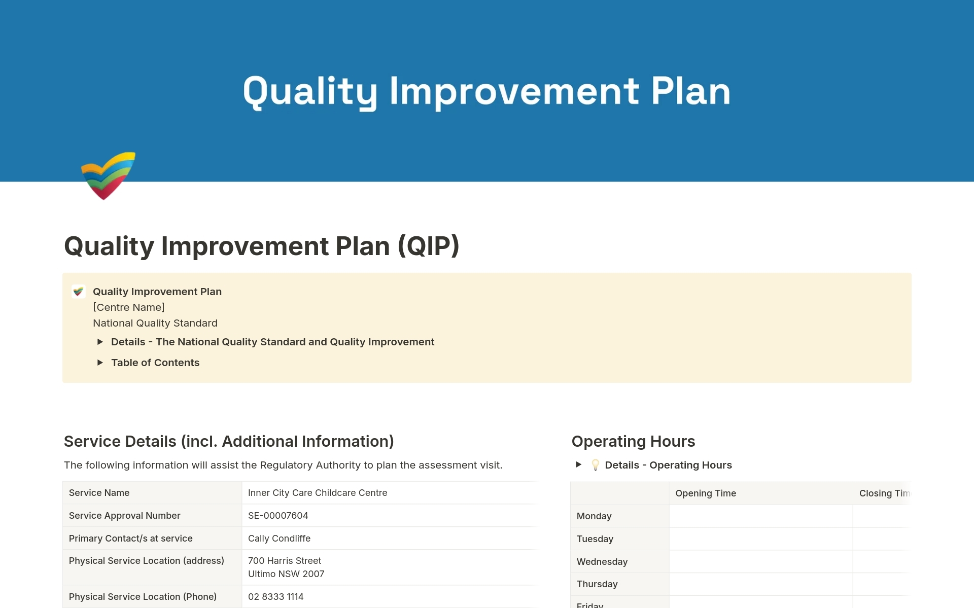 Quality Improvement Plan Aussie Childcare Network