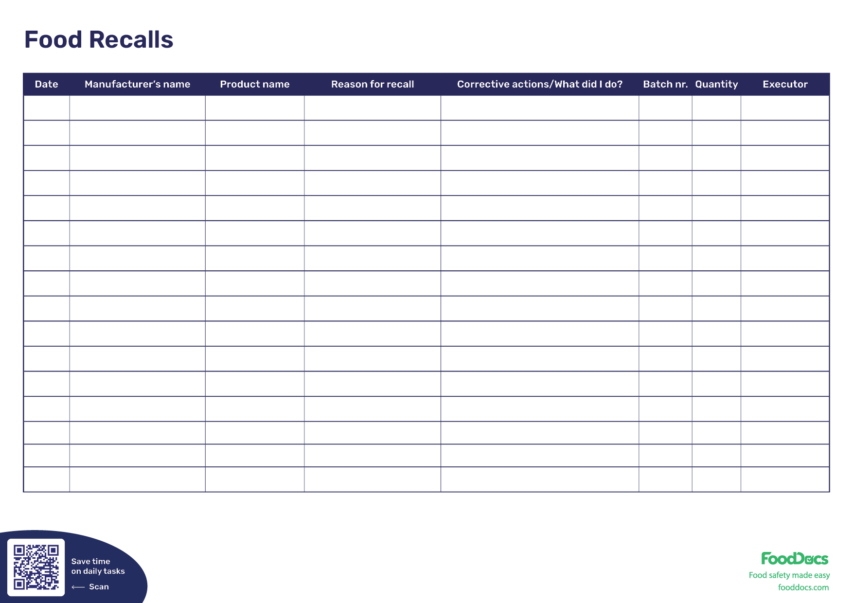 Food Recalls Download Free Template