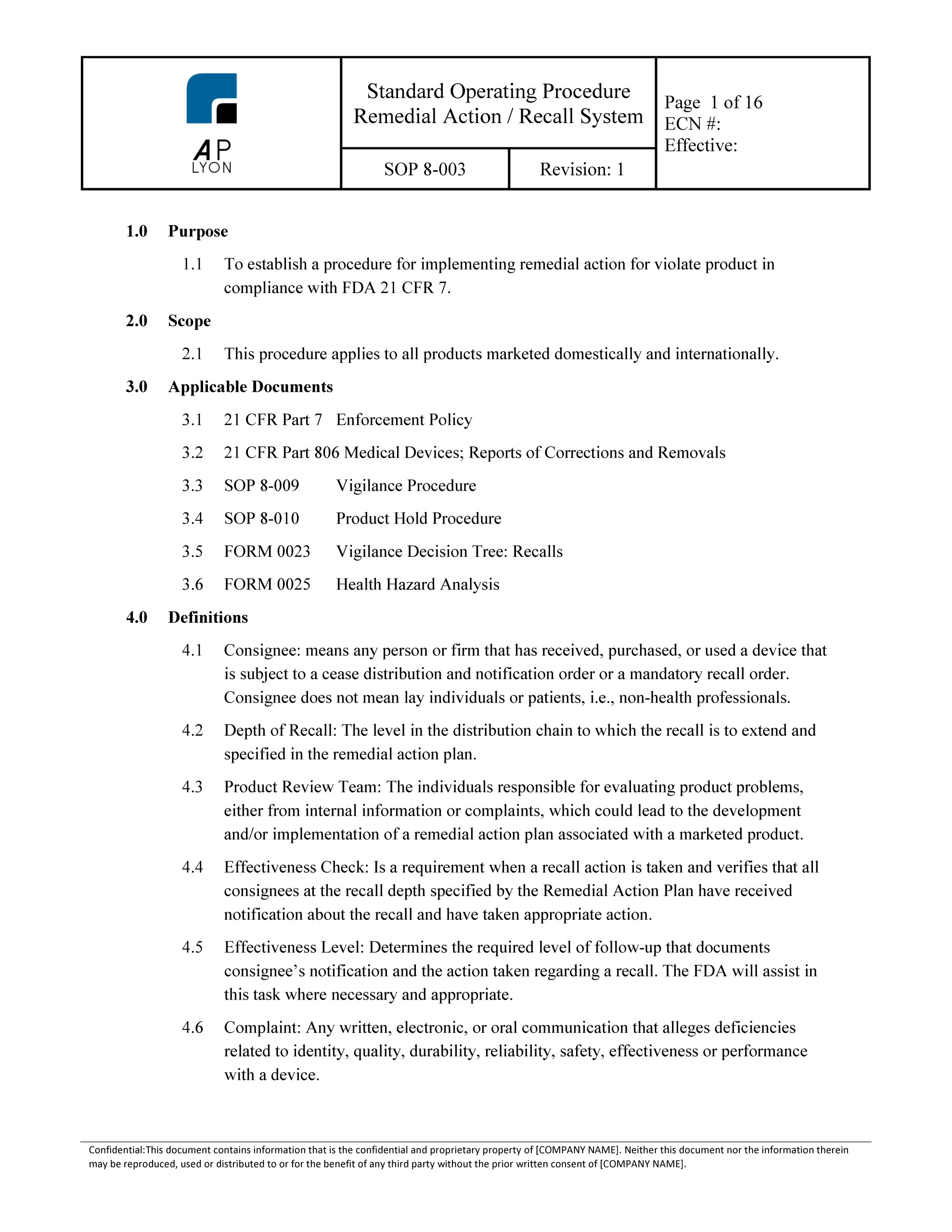 Remedial Action Recall Procedure