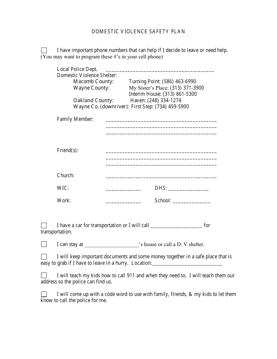 Safety Plan For Domestic Violence Template