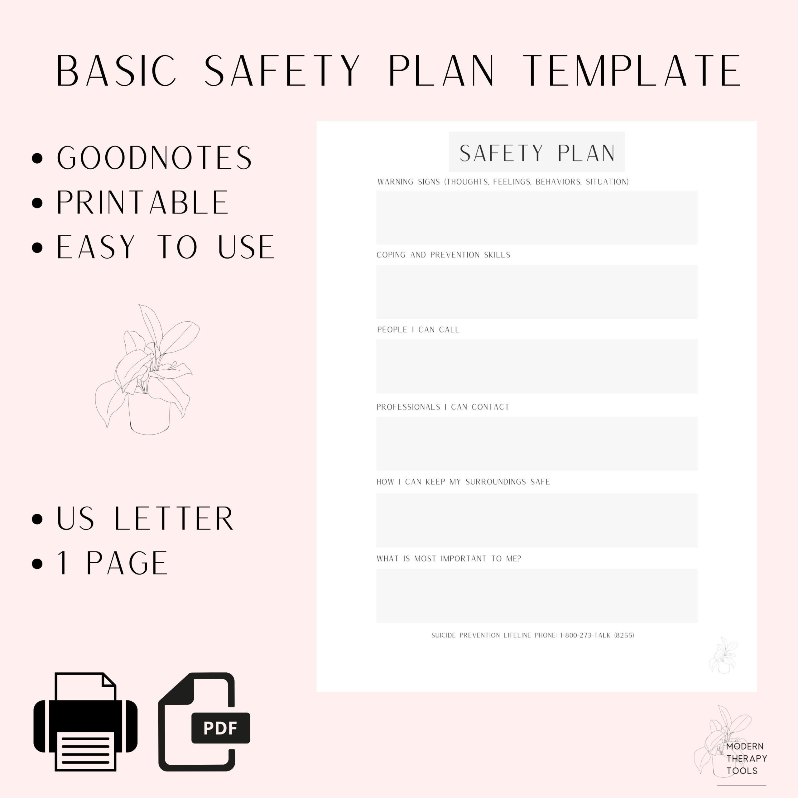 Safety Plan PDF Template Printable PDF Goodnotes Counseling And Therapy Safety Plan