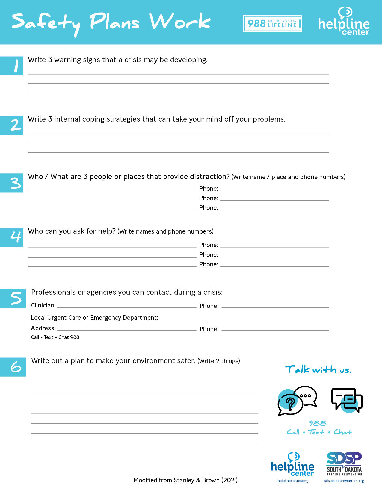 Safety Planning Guide Helpline Center
