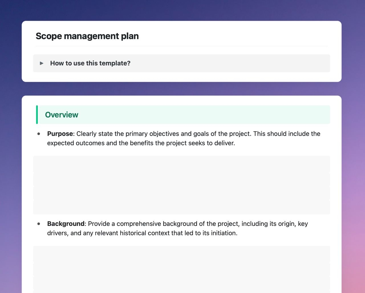 Additionally, a scope management plan template can improve communication among team members, stakeholders, and clients. Having a clear document that outlines the project scope can help avoid misunderstandings and ensure everyone is on the same page.