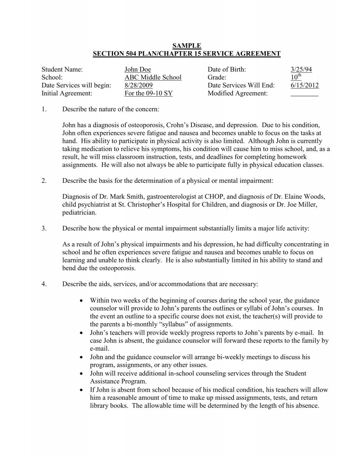 Sample 504 Accommodations 504 Services Punxsutawney Area