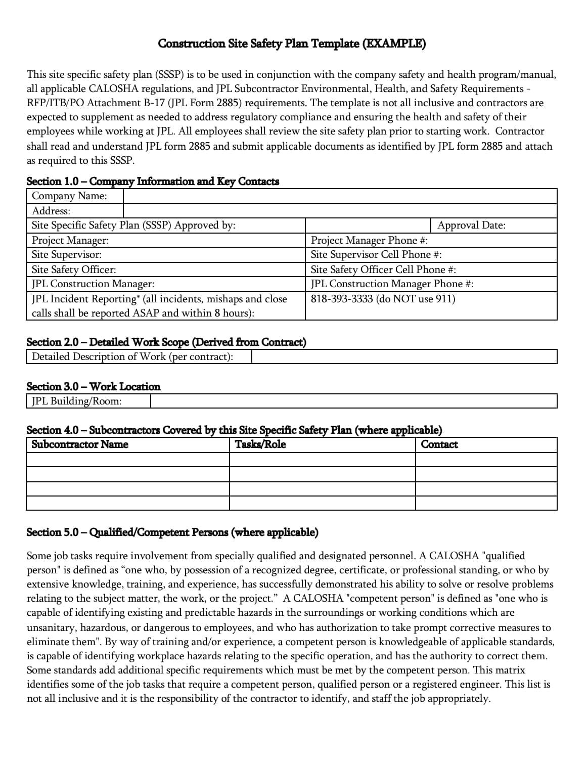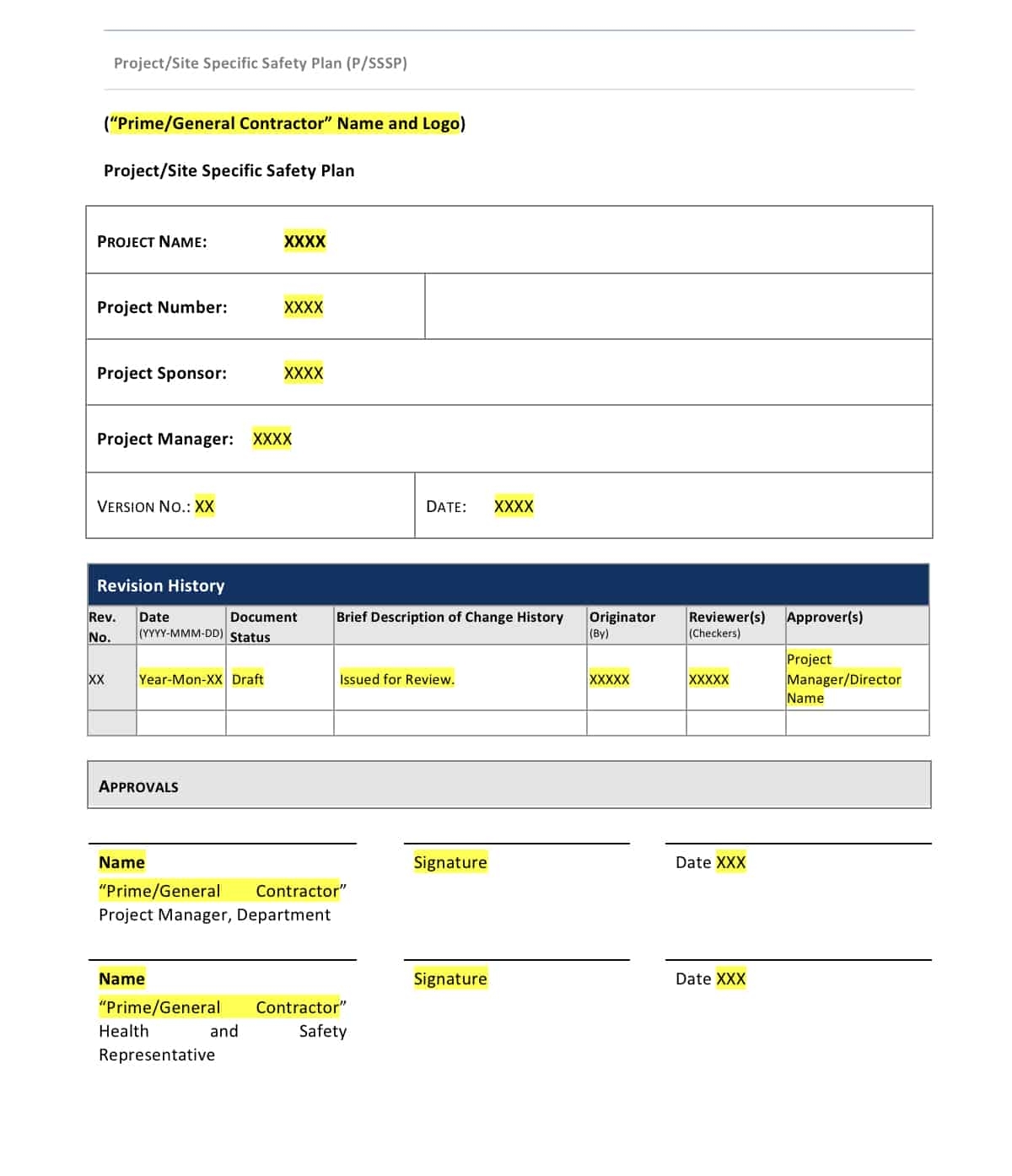 Free Sample Site Specific Safety Plan Template To Edit Online