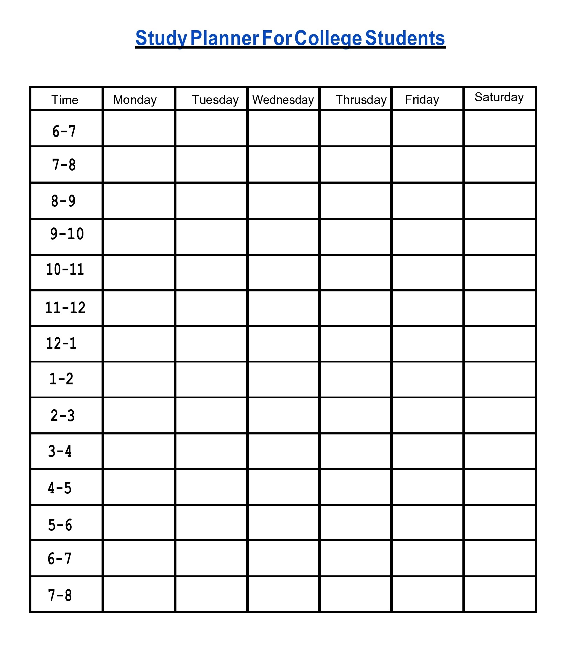 Study Plan Free Printable Template