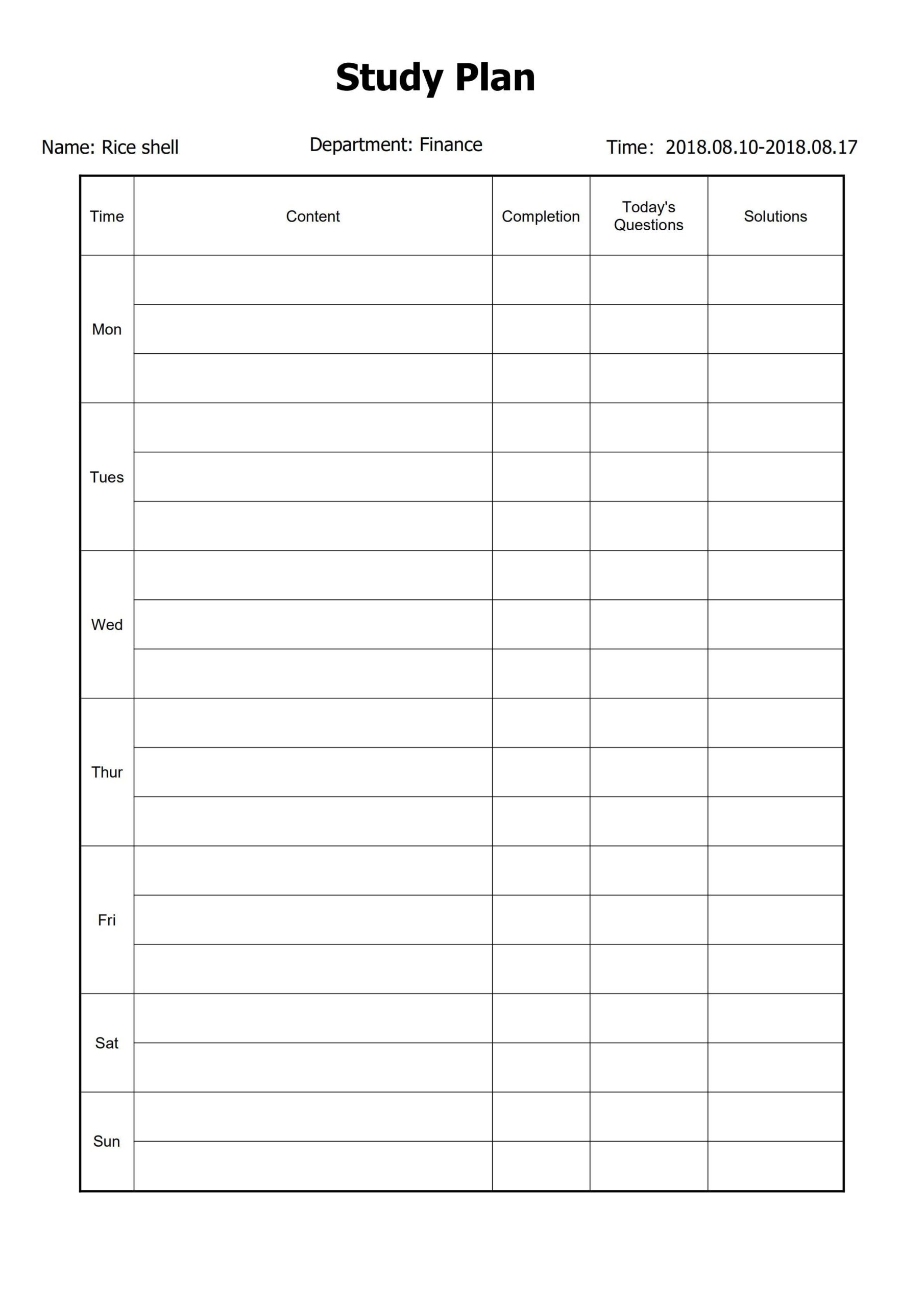 PDF Of Simple Study Plan pdf WPS Free Templates