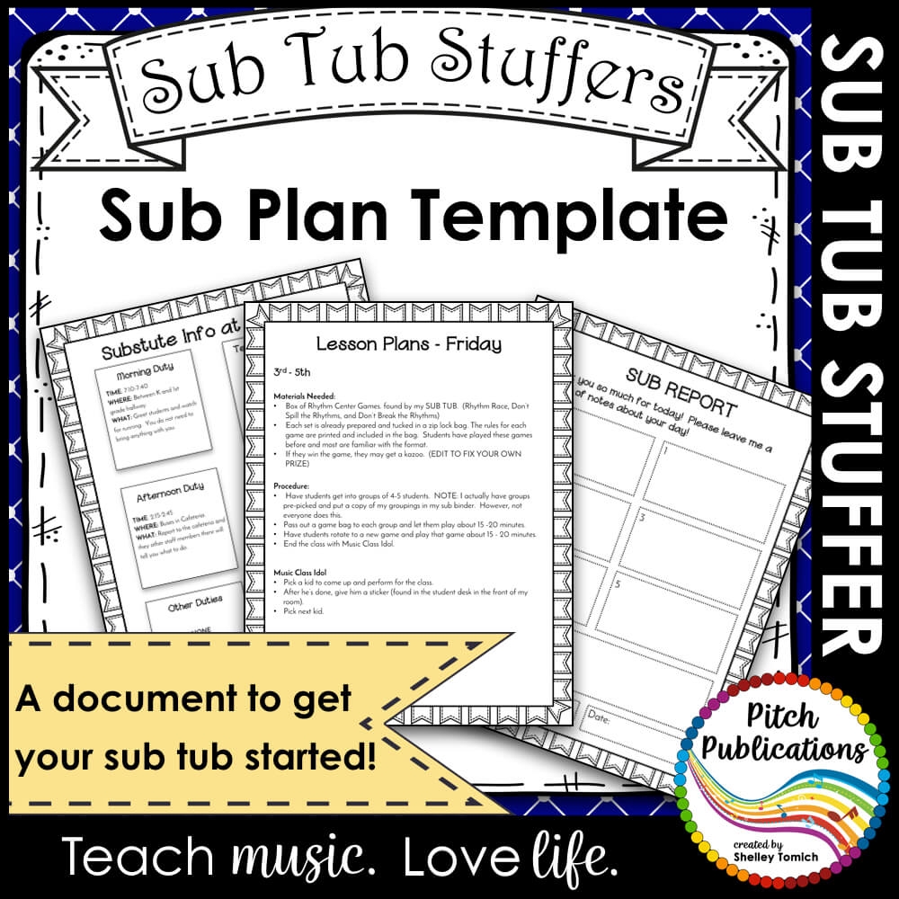 Music Sub Tub Stuffers Music Sub Plan Template Substitute Plans