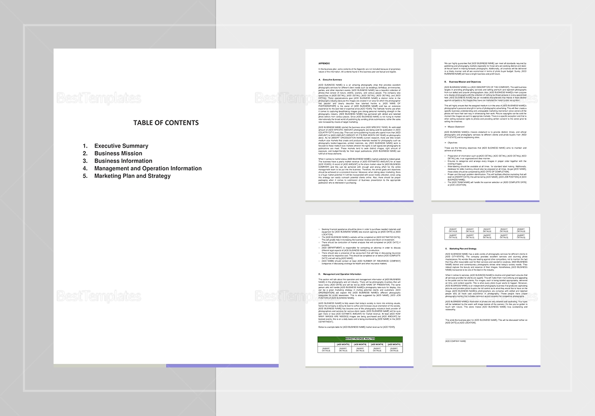 Commercial Photography Business Plan Template In Word Apple Pages