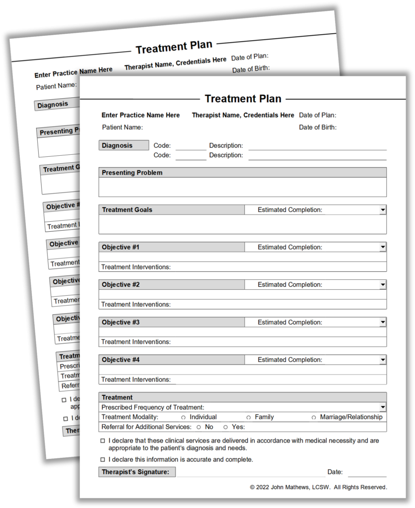 Whether you’re a seasoned therapist or just starting out, having a structured treatment plan can make a world of difference in your practice. Our template is designed to be user-friendly and customizable to suit your unique needs and preferences. Say goodbye to messy handwritten notes and hello to organized digital files!