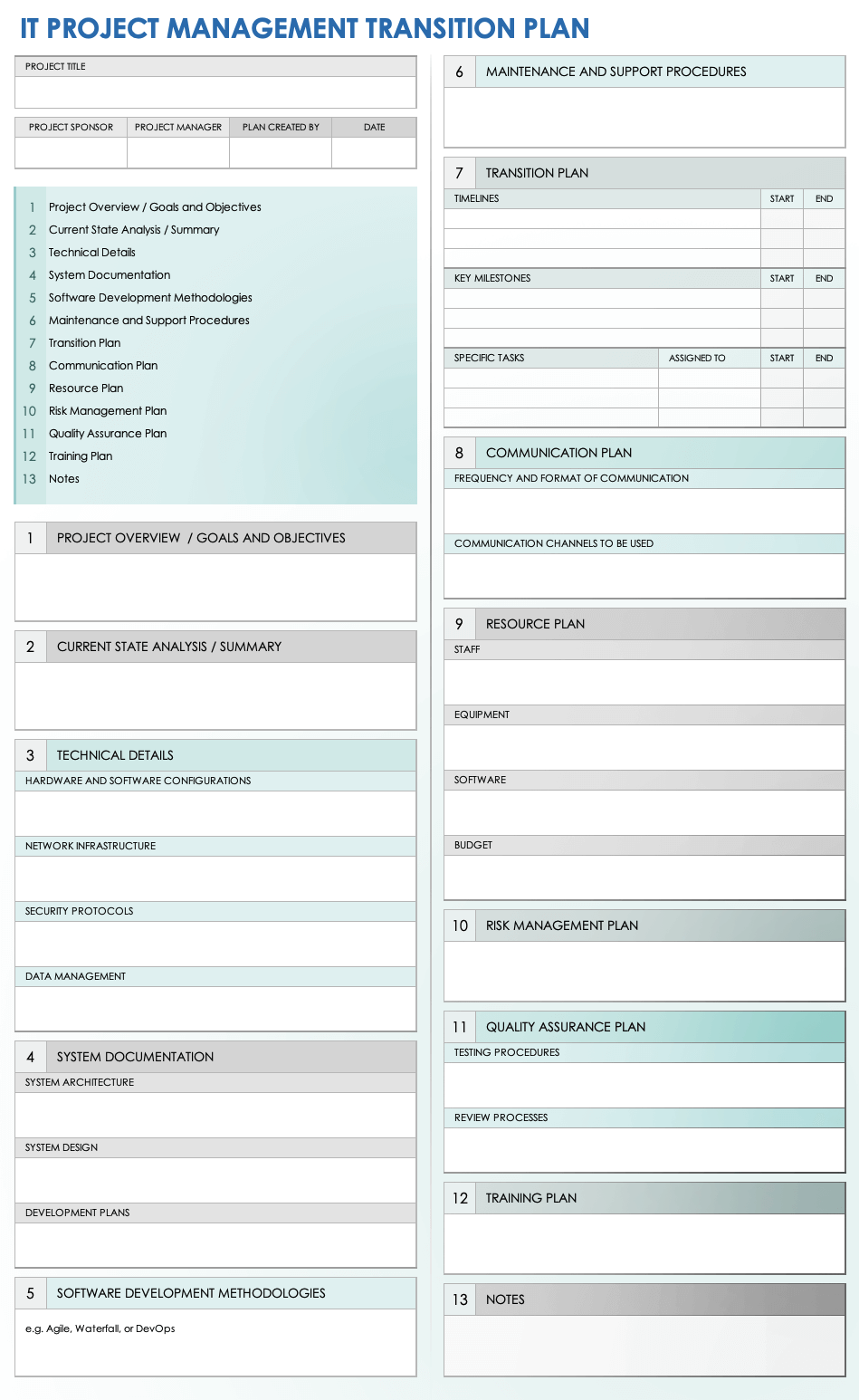 Free Business Transition Plan Templates Smartsheet