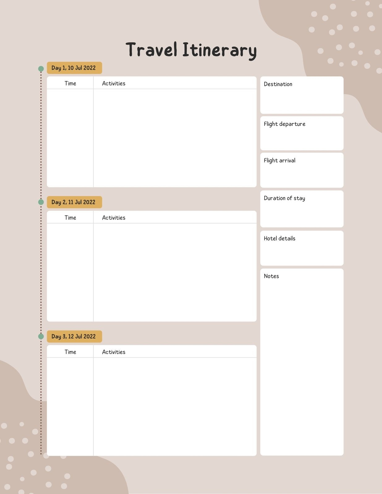 Simply download the template, fill in your information, and print it out. You can carry it with you during your trip or keep a digital copy on your phone or tablet for easy access. It’s a handy tool that will help you stay on top of your travel plans and ensure a stress-free trip.