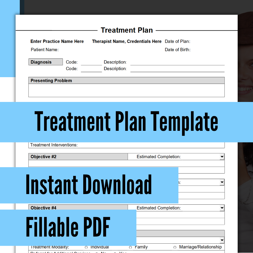 Treatment Plan Template For Therapists PDF Fillable U0026 Editable Printable Social Workers Psychiatrists Mental Health Counselors Form