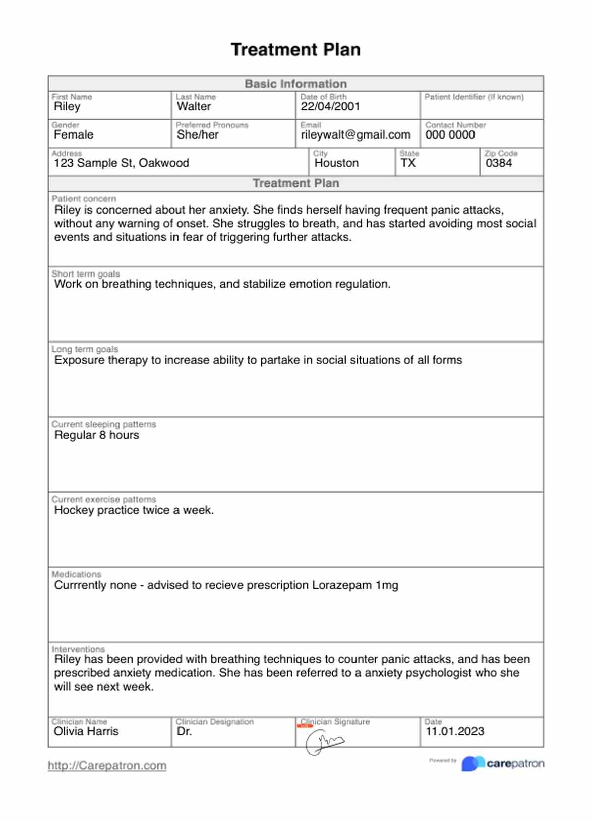 Treatment Plan Template U0026 Example Free PDF Download