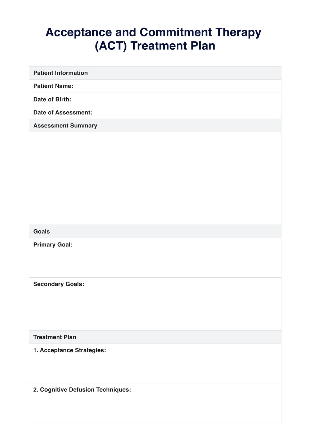 ACT Treatment Plan U0026 Example Free PDF Download