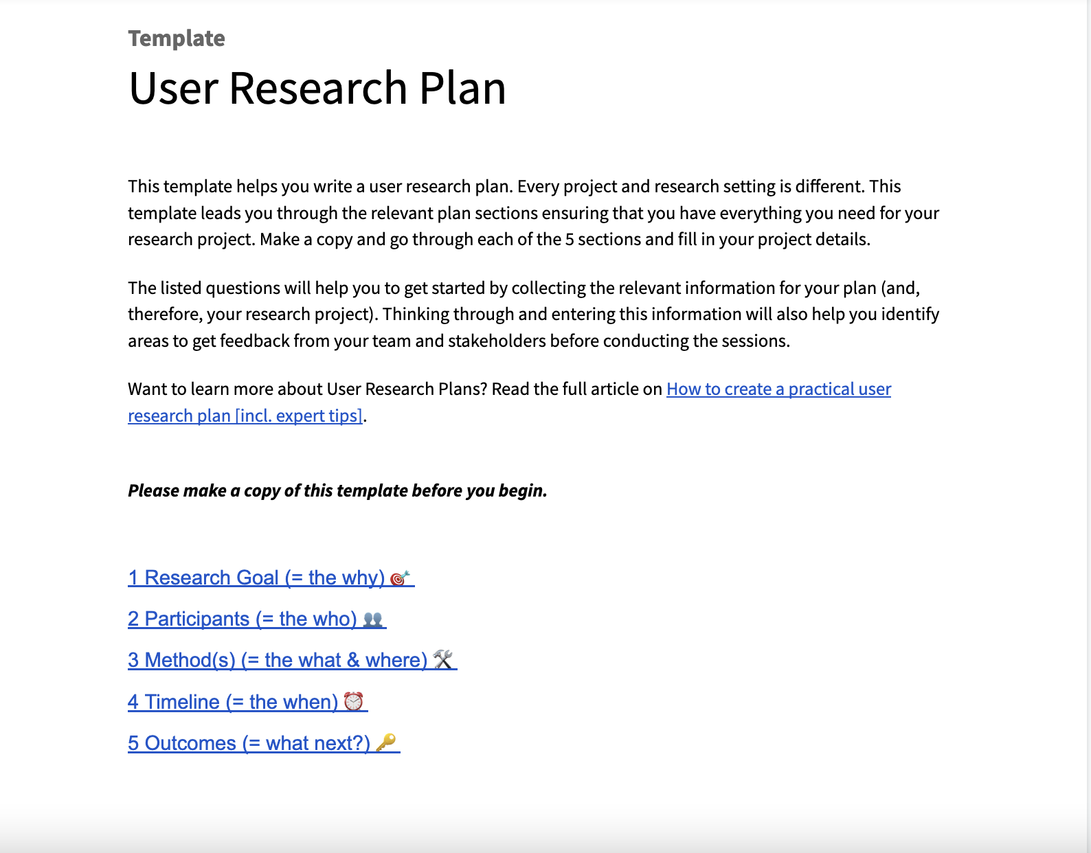 User Research Plan Template
