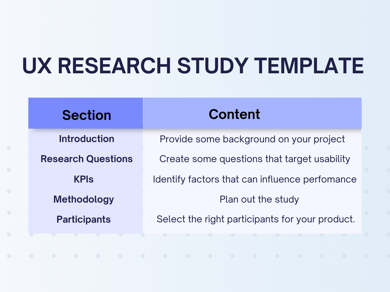 Next, outline the methods you will use to collect data. Will you conduct interviews, surveys, or usability tests? By detailing your research methods, you can ensure that you are gathering the most relevant information to answer your research questions.