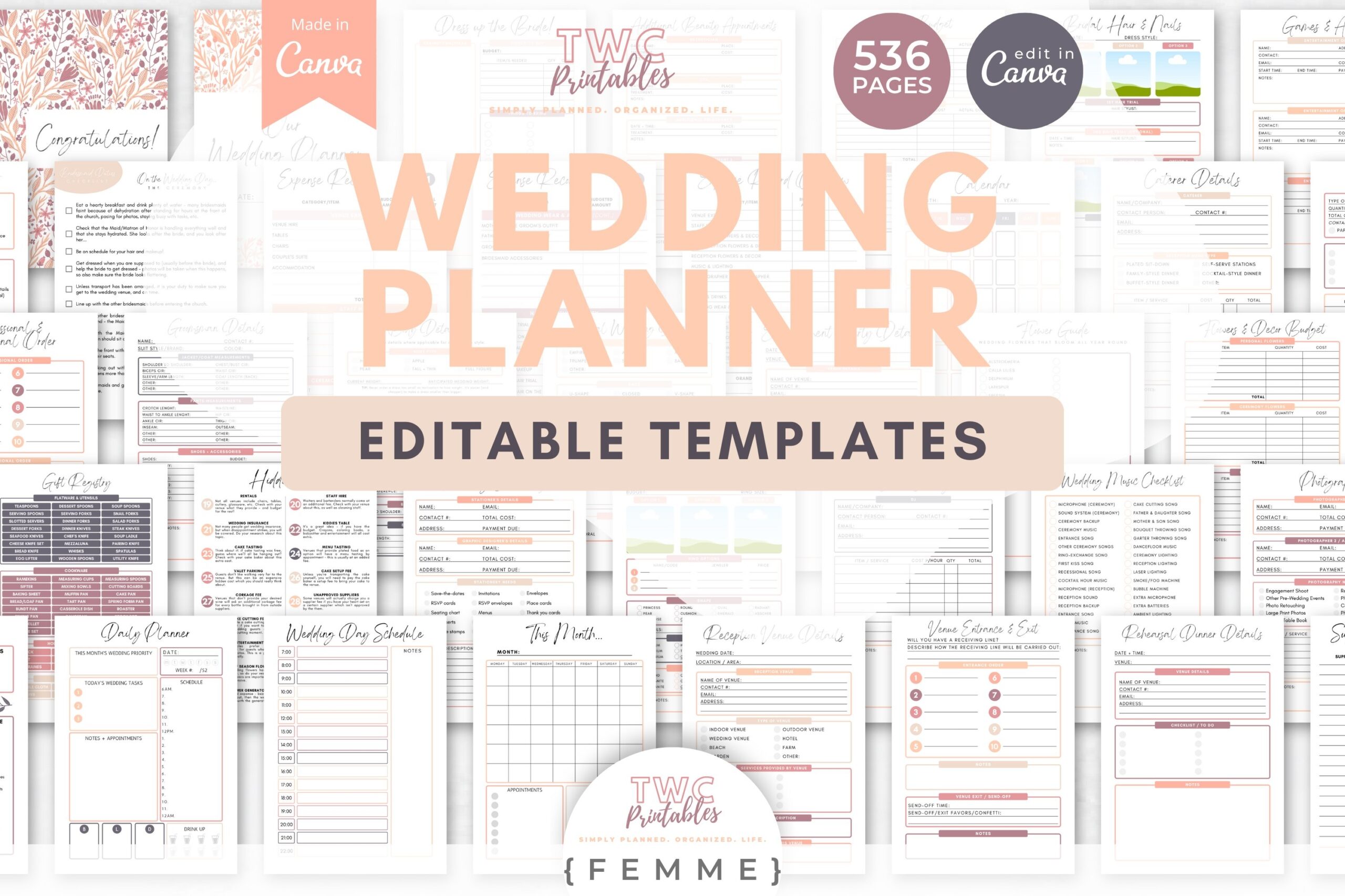Keep track of important dates, appointments, and deadlines with a calendar template. Use checklists to ensure you don’t forget any details, from booking vendors to ordering invitations. Stay on top of your budget with financial planning sheets that help you track expenses and payments.