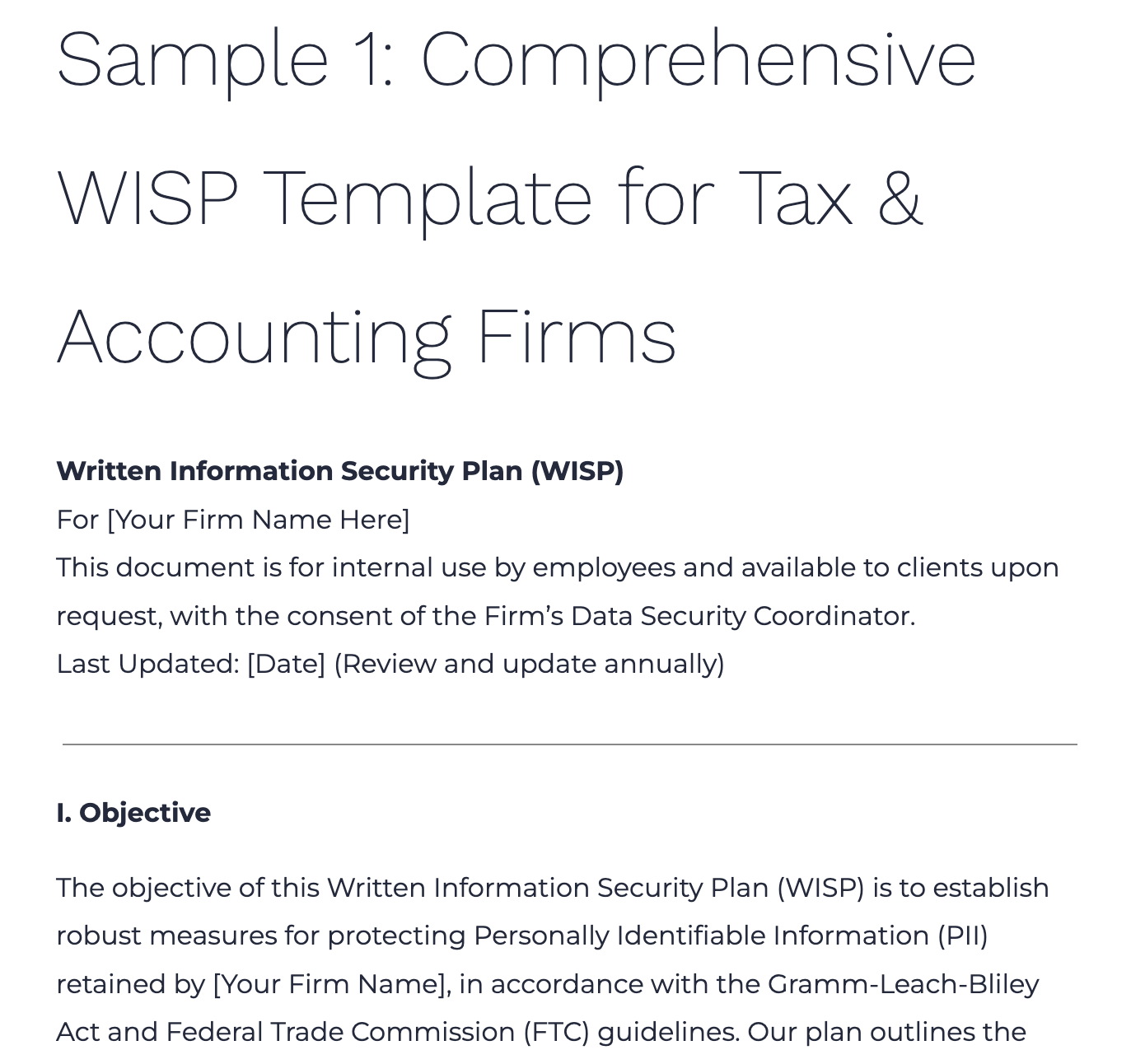 QuickStart WISP Template For Tax Professionals Tax U0026 Accounting
